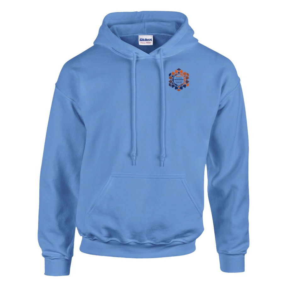 A heavy blend hoodie. Crafted from a soft blend of 50% cotton and 50% polyester. Features a double-lined hood with matching drawstring. The fabric's air jet yarn offers a softer feel and reduces pilling. Includes a front pouch pocket, and rib knit cuffs and waistband with spandex.